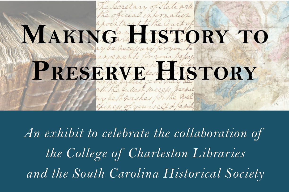 The histories of the College of Charleston Libraries and the South Carolina Historical Society are intricately interwoven. This exhibit commemorates that shared past and celebrates the bright future of our ongoing partnership.